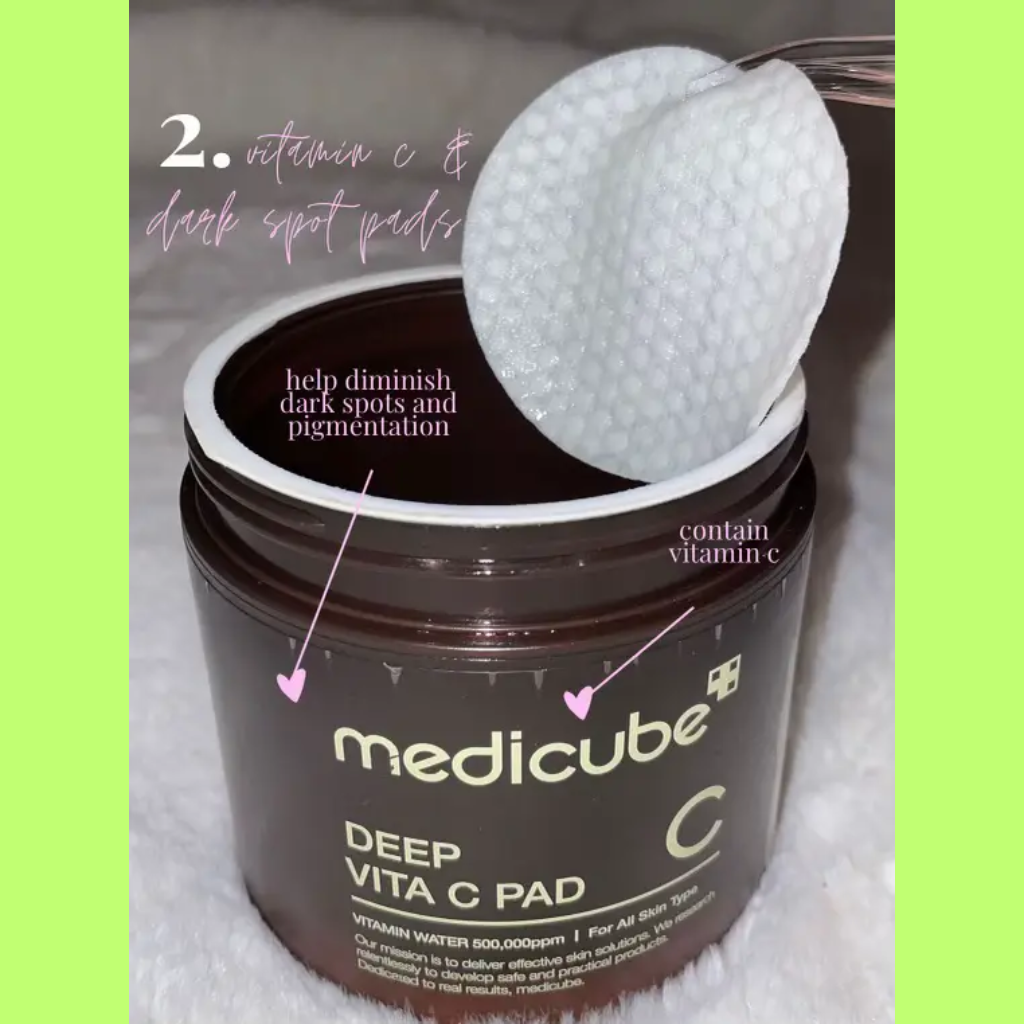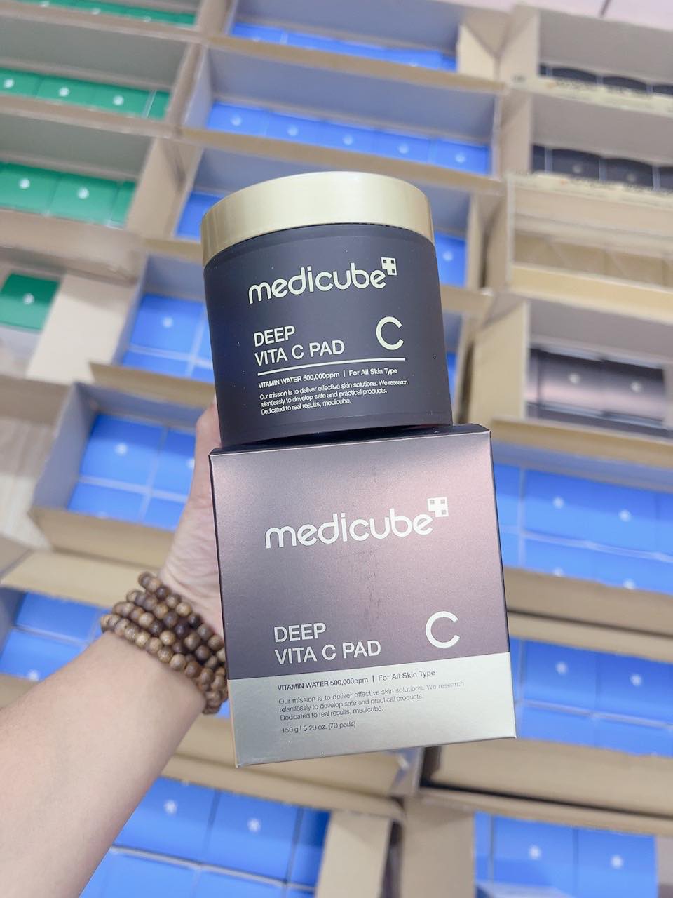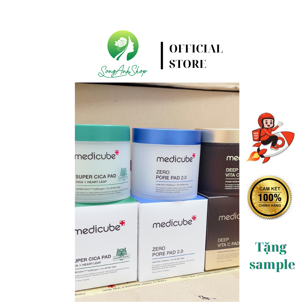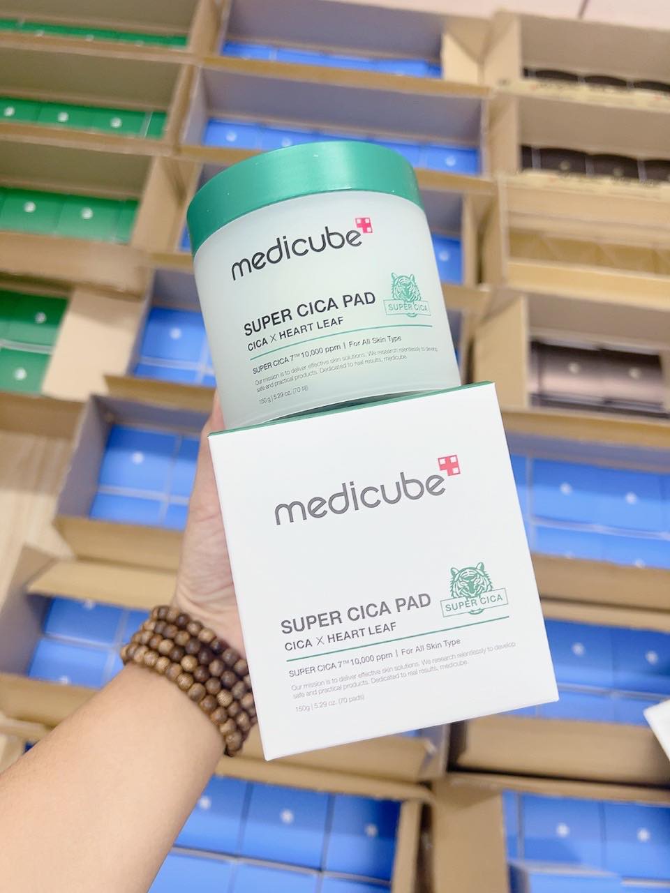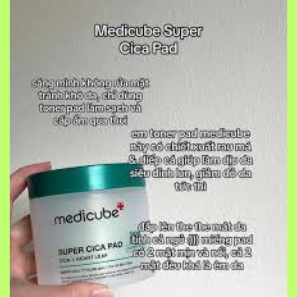 Toner Pad Medicube Zero Pore, Deep Vita C, Super Cica Pad Thương hiệu : Medicube Xuất xứ: Hàn quốc Quy cách: 70 miếng Dành cho tất cả những người mong muốn có làn da khỏe mạnh toner pad MEDICUBE chứa các công thức thực vật được cấp bằng sáng chế và được thử nghiệm da liễu, cùng các thành phần thành phần chiết xuất tự nhiên đã được chứng nhận không gây kích ứng để mấy bà da nhạy cảm hoàn toàn an tâm sử dụng. PHÂN LOẠI & CÔNG DỤNG: 1. Toner Không Lỗ Chân Lông ZERO PORE PAD 2.0 - 100ml / 70 miếng: - Toner miếng 2 mặt chiết xuất từ các thành phần tự nhiên giúp tẩy tế bào da chết - Làm sạch bã nhờn và thu nhỏ lỗ chân lông. - Zero Pore Pads loại bỏ bụi bẩn và tế bào chết đồng thời dưỡng ẩm cho da. - Công thức AHA với Phức hợp trái cây nhẹ nhàng tẩy tế bào chết và thẩm thấu sâu để loại bỏ bụi bẩn, cặn trang điểm sâu trong lỗ chân lông. 2. Toner Dịu Da Nhạy Cảm Super Cica Pad (Vegan) 150g/70 miếng: - Toner Pad Dành Cho Da Mụn Nhạy Cảm - Làm dịu da nhanh chóng, dễ dàng và tiện lợi 3. Toner Trắng Da Deep Vita C Pad 150g/ 70 miếng: - Toner Pad mờ thâm nám, sáng da, - Công thức chứa Vitamin C,Q,P và Niacinamide - Làm mờ các vết thâm và đốm nâu - Da trắng sáng rạng rỡ nhanh chóng - Tẩy da chết nhẹ nhàng và không dấp dính PHÙ HỢP: - Da sần: Tẩy da chết, giảm lượng dầu thừa, giúp loại bỏ tạp chất - Da mịn: Dưỡng ẩm cho da, cải thiện kết cấu da, làm mịn da để có một làn da sáng mềm CÁCH SỬ DỤNG: 1. Sau khi rửa mặt sạch, dùng mặt có vân nổi vuốt nhẹ nhàng khắp mặt từ giữa ra ngoài 2. Với mặt mềm mượt, nhẹ nhàng vuốt lên mặt bạn một lần nữa để đánh bóng lần cuối 3. Vỗ nhẹ để tăng cường khả năng thẩm thấu